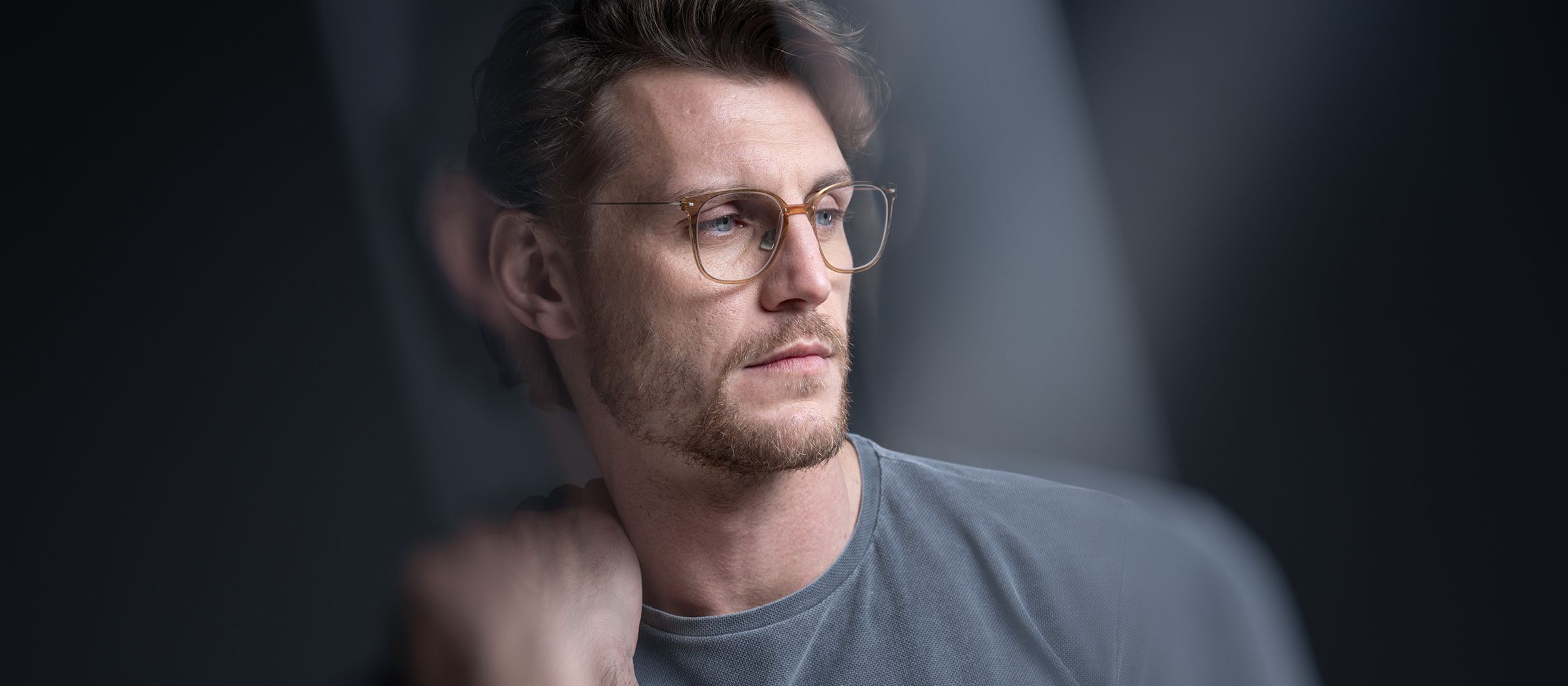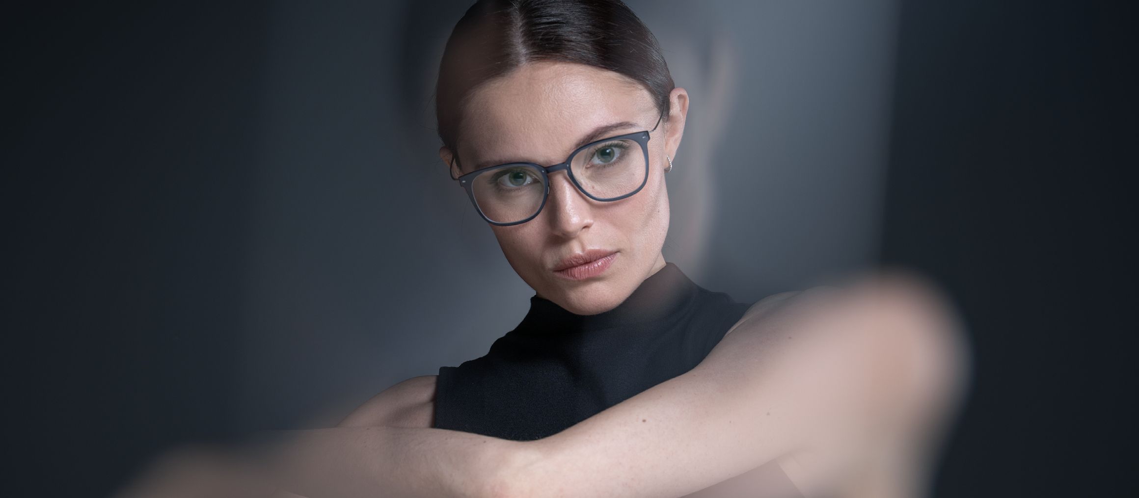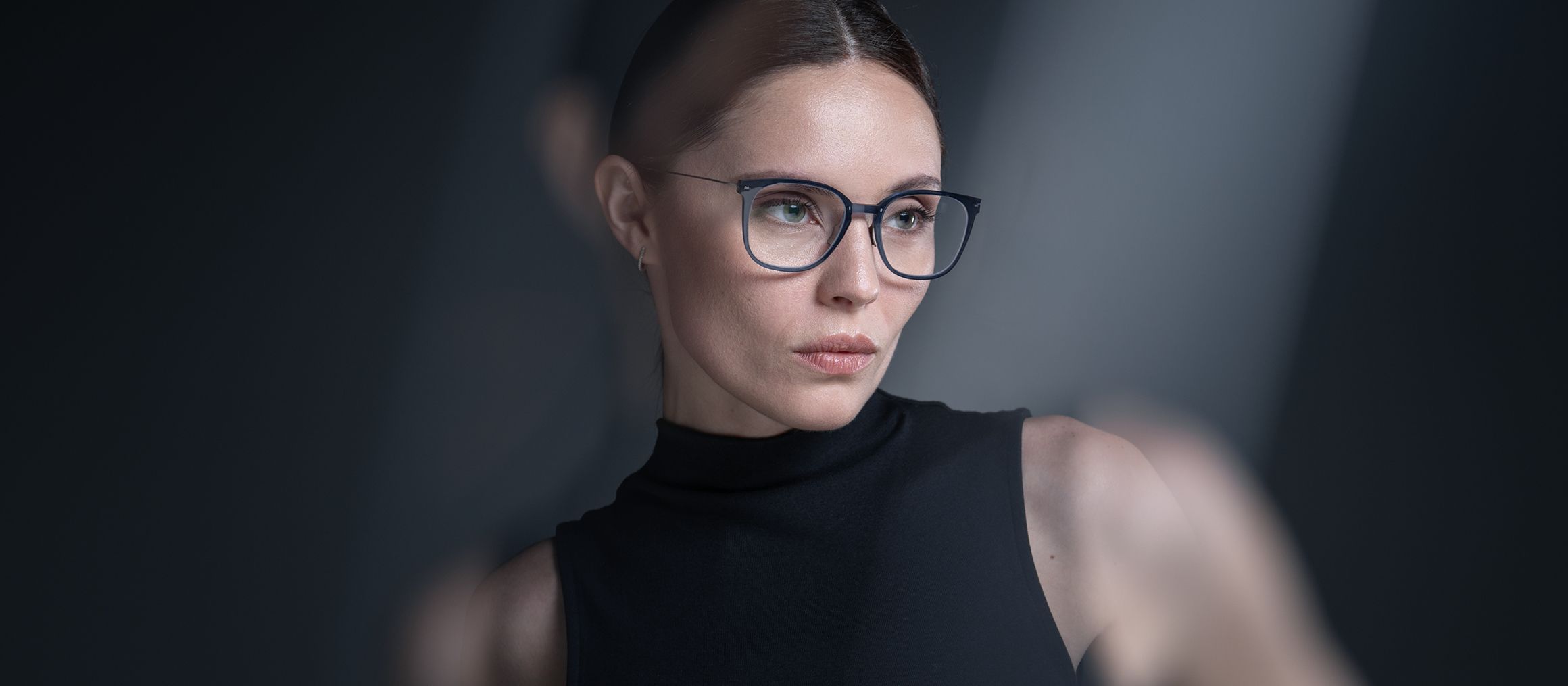 - Optical frame with transparent VitraCore polymer front and aerospace‑grade titanium components.